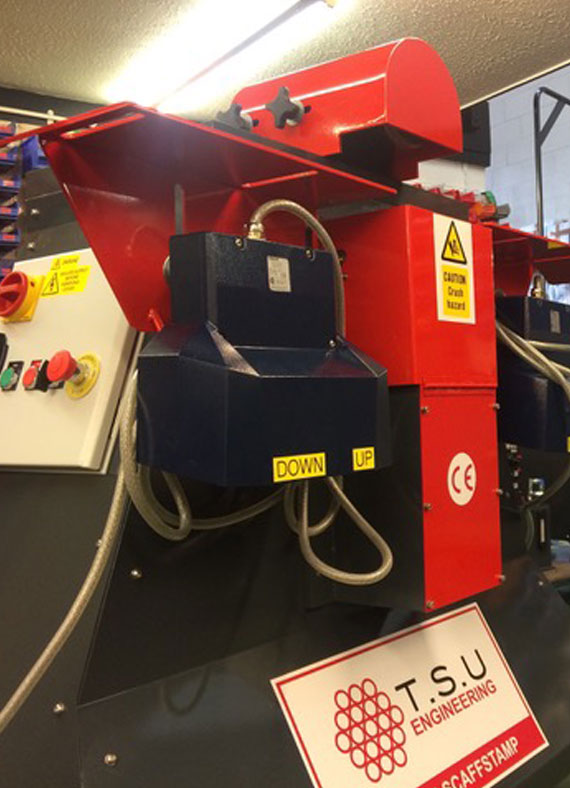 Developed by TSU Engineering to complement our existing and established range of scaffold security marking systems. The System Scaffstamp machine can emboss your company information on almost any type of round or tubular access equipment. This machine has adjustable pressure and speed. It does not require a skilled worker to operate. Equipment from manufacturers such as Kwikform, Climastage, Cuplock, Allround and Layher, can be easily be marked.
